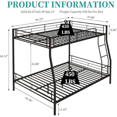 Product Name:Heavy Duty Metal Bunk Bed Full Over Queen Bunk Bed Frame for Adults, Noise Free Frames, No Boxing Spring Needed