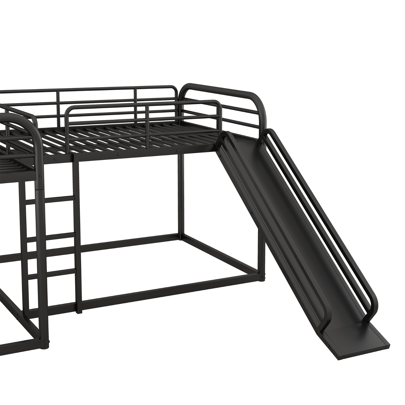 Full And Twin Size L-Shaped Bunk Bed With Slide And Short Ladder, Black